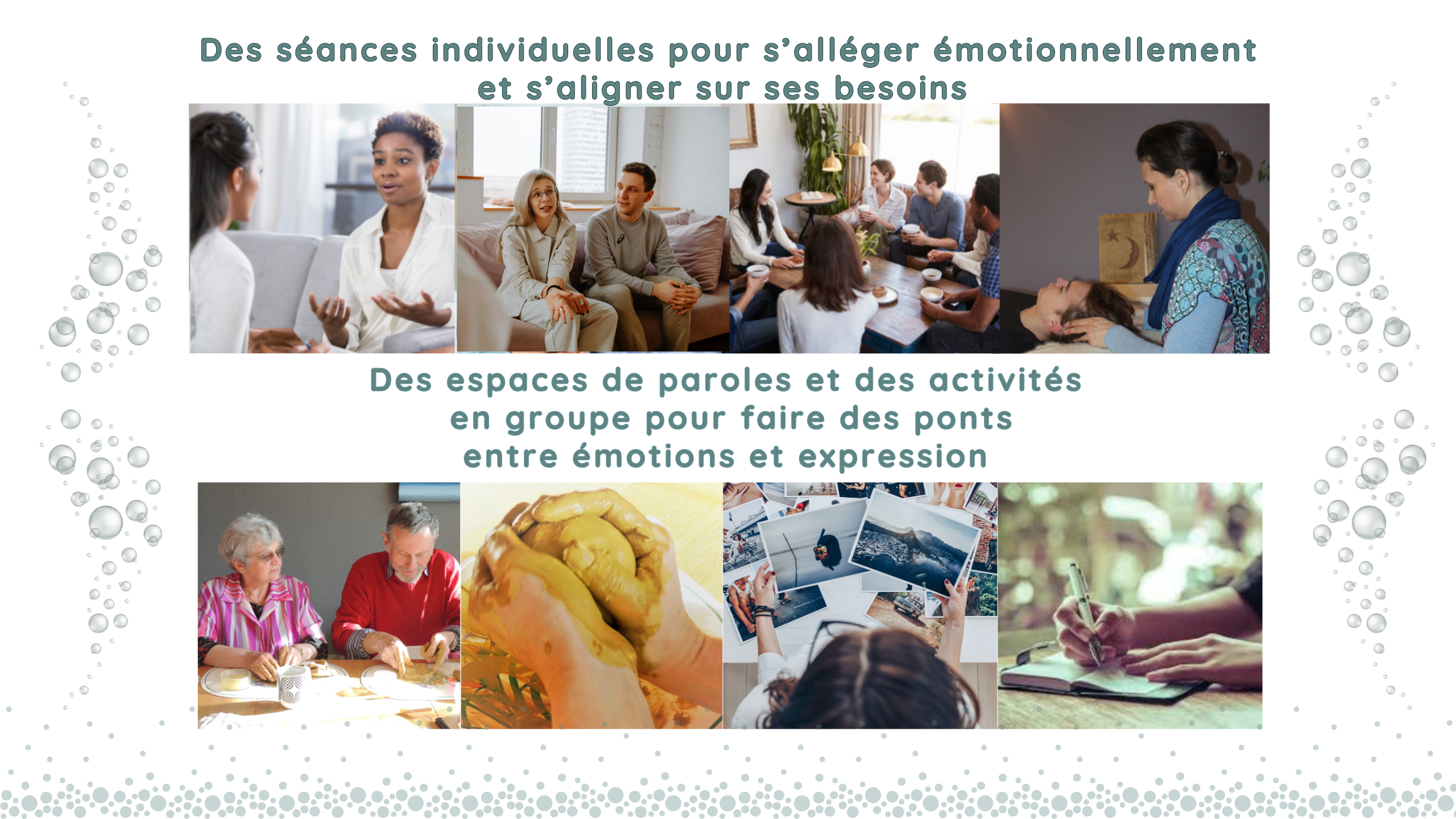 À travers l’expression de soi, le relâchement de tensions, les soins vibratoires et la communication interpersonnelle