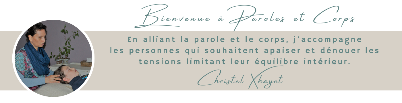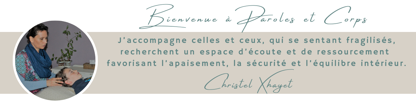 Un espace de paroles et de détente corporelle (enfants, adolescents et adultes): où exprimer vos ressentis et vos besoins, digérer vos émotions, clarifier vos perspectives et développer vos solutions. En complément, le massage de ressourcement crânien, du visage et des pieds va apporter de l’apaisement, tout en dénouant des tensions présentent. (Il s’agit d’un massage pratiqué habillé, à l’exception des chaussures et des chaussettes). L’ancrage et l’alignement font partie intégrante de ces séances et favorisent l’équilibre intérieur.